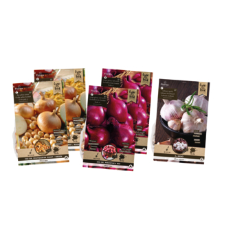 Vaak begint een recept met " fruit de ui en de knoflook in de pan". En hoe lekker ruikt dan al je gerecht? Om deze reden hebben we dan ook een combi van deze 2 in een pakket zitten. Uit eigen tuin smaakt ook nog eens veel lekkerder... dus wat ga je maken?
