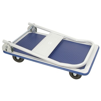 De plateauwagen met neerklapbare steun is een ideale hulp bij het transporteren van onder andere verhuisdozen en kleinmeubelen tot een maximum gewicht van 150 kilogram. De plateauwagen heeft een draagoppervlak van circa 480 bij 840 millimeter, een inklapbare steun en vier stevige wielen.