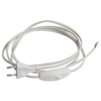 Deze 2 meter lange witte Plieger aansluitsnoer met eurostekker en schakelaar is onder andere geschikt voor montage aan een wand- of vloerlamp.