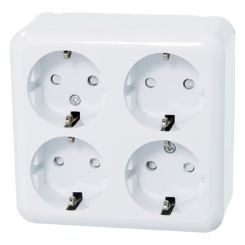 Plieger Basic opbouw stopcontact 4-voudig geaard vierkant wit