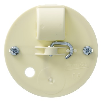 Plieger centraaldoosdeksel rond, ten behoeve van een lichtpunt in het plafond. Deze ronde deksel is voorzien van haakje waaraan je de verlichting kunt ophangen.