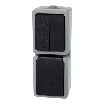 Plieger combinatie serieschakelaar geaard verticaal grijs/zwart spatwaterdicht