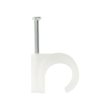 Met deze Plieger kabelclip rond wit kun je snoeren en kabels netjes laten geleiden langs plinten of andere houten oppervlakken. Deze ronde witte kunststof kabelclip is geschikt voor snoeren en kabels met een diameter van 16 en 19 millimeter (5/8 en 3/4 inch). Het aan de kabelclip bevestigde spijkertje kun je met behulp van een hamer eenvoudig in de houten ondergrond bevestigen. Verpakking: 25 stuks.