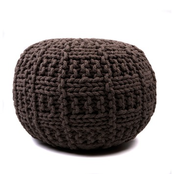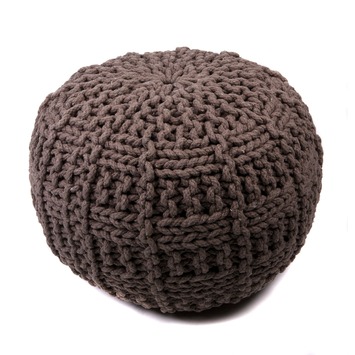 Poef gebreid rond taupe 50x35 cm