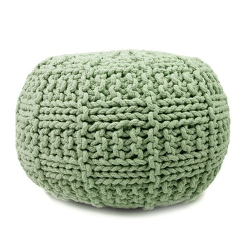 Poef gebreid rond vergrijsd groen 50x35 cm