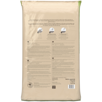 Geniet het hele jaar door van een sterk en levendig gazon met Pokon Bio gazonmest. Deze biologische meststof biedt maar liefst 120 dagen voeding en bevat een plantversterker die het bodemleven stimuleert. De hoogwaardige voedingsstoffen worden snel opgenomen en dringen diep door tot bij de wortels, wat je gras resistent maakt tegen droogte, mos, onkruid, en kale plekken. Dankzij de extra magnesium krijgt je gazon een mooie volle groene kleur. Voor het beste resultaat bemest je je gazon drie keer per jaar: in het voorjaar, de zomer en het najaar. Vermijd te warme dagen en perioden zonder regen voor optimaal effect. Gebruik ongeveer 1 kg voor 15 m² in het voorjaar en de zomer, en 0,5 kg in het najaar. Deze mest is ook ideaal voor nieuwe graszoden. Gebruik een strooier voor een gelijkmatige verdeling en besproei indien nodig binnen 24 uur als het niet regent. Met 16,8 kg kun je tot 250 m² bemesten.