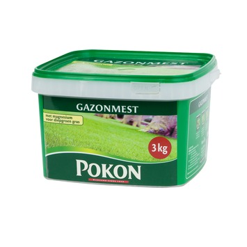Deze Pokon gazonmest 3 kg bevat extra magnesium, wat het gras een diepgroene kleur geeft. Dit emmertje bevat 3 kilo mest.