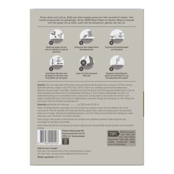 Heeft je gazon wat extra liefde nodig na het verticuteren of zijn er kale plekken die je snel wilt opvullen? Dan is Pokon graszaad herstel SOS jouw redder in nood! Dit graszaad zorgt ervoor dat je gazon in no-time weer egaal groen is, met een kiemduur van slechts 1 tot 2 weken. Zelfs als de bodemtemperatuur slechts 6 graden Celsius is, begint het zaad al te ontkiemen. Dit maakt het de perfecte keuze voor nazorg in de herfst- en wintermaanden. Zorg ervoor dat de buitentemperatuur idealiter tussen de 15 en 25 graden Celsius ligt en dat de grond goed vochtig is bij het zaaien. Begin met het maaien van de grasmat om mos en onkruid te verwijderen en strooi een laagje Pokon gazongrond uit voordat je het zaad gelijkmatig inzaait. Het is belangrijk om het zaad gelijkmatig over het gazon te verdelen, zonder te dicht te zaaien. Rol het ingezaaide gebied licht aan en besproei het voorzichtig als het binnen 24 uur niet regent. Verdeel eerst de randen, en werk dan het gazon zowel in de lengte als de breedte aan. Dankzij de verpakking van 500 gram kun je een gebied van 20 tot 30 m² herstellen. Sta versteld van hoe snel je gazon weer tot leven komt!
