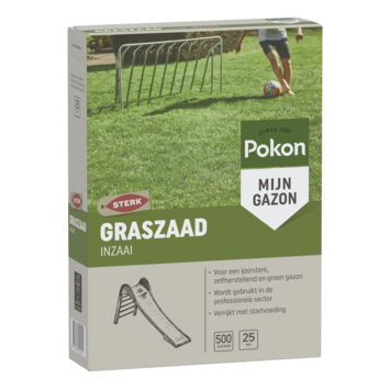 Wil je een nieuw gazon inzaaien dat sterk en zelfherstellend is? Kies dan voor Pokon graszaad inzaai! Dit graszaad is speciaal gecoat om optimale kieming te verzekeren en beschikt over RPR-technologie waarmee elk grasplantje horizontale uitlopers vormt. Hierdoor krijg je een stevig gazon dat bestand is tegen intensief gebruik, zoals in de professionele voetbalsector. Zaai bij een buitentemperatuur tussen 15 en 25 graden Celsius. Begin met de buitenranden en werk je weg naar het midden. Zorg voor een vochtig zaaibed en vergeet niet het gazon regelmatig te sproeien om de groei te bevorderen. Binnen 2 tot 3 weken zie je het resultaat. Gebruik een scherpe maaimachine voor de eerste maaibeurt als het gras 8 tot 10 cm is. Met 500 gram bedek je tot 25 m².