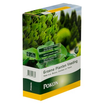 De Pokon Groene Planten Voeding versterkt de groene kleur van tuinplanten zoals een buxus en zorgt ervoor dat deze goed kunnen groeien en bloeien. Een plant in de volle grond heeft ongeveer 30 tot 40 gram voeding nodig. Jonge planten en planten in potten hebben voldoende aan 10 tot 20 gram voeding per plant. Voor hagen is dat circa 80 gram per meter. Om de werking van de voeding direct op gang te brengen is het nodig om na het strooien de tuinplanten water te geven. Het is af te raden om deze tuinplantenvoeding te gebruiken bij temperaturen boven de 25 graden. Kortom, de Pokon tuinplantenvoeding 1 kg is ideaal om tuinplanten groen te houden. Verpakking: pak 1 kilogram.