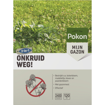 Heb je last van onkruid in je gazon, zoals boterbloem, madeliefje, klaver of paardenbloem? Pokon Onkruid Weg! biedt een effectieve oplossing. Deze onkruidbestrijder verwijdert snel onkruid en bevat ook gazonmest, waardoor je gras direct gevoed wordt. De gazonmest voorziet je gazon van essentiële voedingsstoffen, waardoor het beter bestand is tegen onkruid. De beste periode voor het toepassen is van maart t/m september, wanneer de omstandigheden het meest geschikt zijn. Zorg ervoor dat de grond niet bevroren is en dat er geen zware regen wordt verwacht, anders kan het effect verminderd worden. Maai je gazon de eerste vier dagen na toepassing niet. Voor een mooi, egaal gazon kun je Pokon Kale Plekken Hersteller gebruiken voor het herstellen van kale plekken die na behandeling kunnen ontstaan.