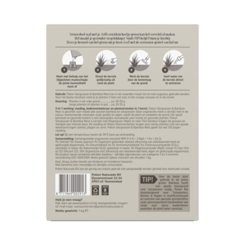 Pokon siergrassen & bamboe mest 1 kg is de geheime kracht voor weelderige siergrassen en bamboe in je tuin. De 3-in-1 formule omvat voeding, bodemverbetering en plantversterking, allemaal in een handige korrel. Geschikt voor bijna alle soorten bamboe en siergrassen, deze organische meststof met natuurlijke mineralen zoals zeoliet en algen geeft je planten de nodige voeding en versterkt de bodem. Dankzij magnesium en ijzer beschikken je grassen en stengels over een rijke, diepe kleur en zijn ze sterk en robuust tegen ziektes, plagen en vorst. Voor langdurige resultaten en gezondheid tot wel 120 dagen, kan de mest van maart tot augustus worden gebruikt. Idealiter voed je je planten elk jaar vroeg in het voorjaar en in de zomer. Gebruik het maatschepje om de juiste hoeveelheid te doseren, strooi de korrels rond de basis van de plant, werk ze in de aarde en besproei met water. In de volle grond gebruik je tussen de 40-50 gram, en in potten of voor jonge planten volstaat 20-25 gram.