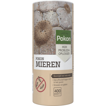 Pokon Tegen Mieren Korrels 400 gr. Mieren komen meestal voor bij warm weer en mierennesten zijn te herkennen aan zandhoopjes tussen de tegels. Dit kan zorgen voor verzakking van tegels en daarom zal je dit moeten bestrijden. Mierenpoeder is een natuurlijke en effectieve oplossing op basis van spinosad om een heel mierennest uit te roeien. Het is mogelijk om het middel te strooien of op te lossen in water en daarna in de nestingangen te gieten. Gebruik bij strooien 20 gram en bij gieten 40 gram gemengd in 2 liter water. De mierenkorrels zijn effectief tot een maand na toepassing, daarna kan je een tweede keer toepassen. Dit product is alleen geschikt om buiten te bestrijden.