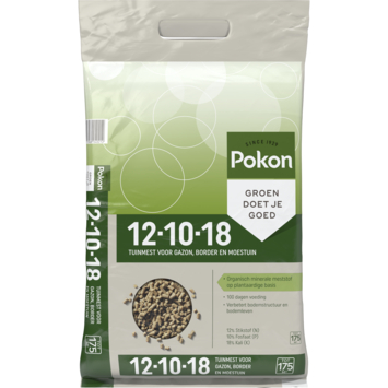 Pokon tuinmest 12-10-18 is een uitstekende keuze voor je gazon, bloembedden en moestuin. Deze organisch minerale meststof op plantaardige basis biedt 100 dagen voeding, wat zorgt voor stevige groei en een rijke bloei. De meststof verbetert zowel de bodemstructuur als het bodemleven, wat bijdraagt aan de gezondheid van je tuin. De uitgebalanceerde mix van voedingsstoffen is perfect voor verschillende soorten planten en zorgt ervoor dat je tuin het hele seizoen door sterk blijft.