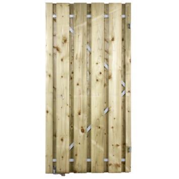 Deze poort kan het beste worden gecombineerd met een schutting van vuren hout. De hoogte is 180 cm. Je kunt zelf kiezen of je deze poort links- of rechtsdraaiend plaatst. Verder is deze poort voorzien van een metalen frame wat zorgt voor extra stabiliteit en stevigheid. Het is dus een extra duurzame poort.Bevestigingsmateriaal wordt meegeleverd: 2x verstelbare heng en 2x plaatduim. Deze tuindeur kan zowel links- als rechtsdraaiend worden geplaatst..