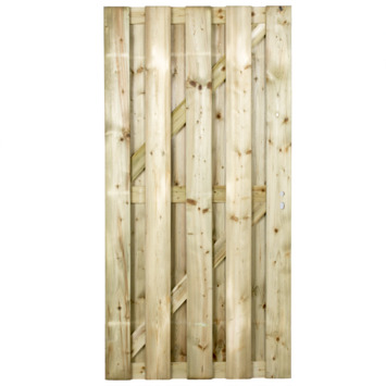 Deze poort kan het beste worden gecombineerd met een schutting van vuren hout, zoals de schutting Exclusive. De poort heeft een breedte van ongeveer 100cm en de hoogte is 200 cm. Je kunt zelf kiezen of je deze poort links- of rechtsdraaiend plaatst.