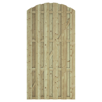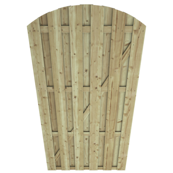 Deze poort kan het beste worden gecombineerd met een schutting van grenen hout, zoals schutting Wales. De poort heeft een standaard breedte van ongeveer 90 cm en de hoogte is 180 cm. Deze tuindeur kan zowel links- als rechtsdraaiend worden geplaatst. Bevestigingsmateriaal dient los te worden aangeschaft.