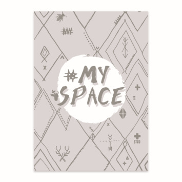 Poster My Space 50 x 70 cm is een stoere wandversiering voor in de kinderkamer. De ruitvormen met de tekst '# My Space' zijn een stijlvolle accessoire voor de slaapkamer. De poster heeft een afmeting van 70 centimeter hoog en 50 centimeter breed.