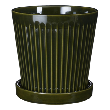 Houd het netjes en schoon met deze prachtige donkergroene bloempot. Hij wordt geleverd met een schotel, waardoor je geen kringen krijgt. Het overtollig water wordt keurig opgevangen in de schotel. De pot is voorzien van een geribbeld ontwerp en past in goed elk interieur. Hij is vervaardigd van keramiek en zowel de hoogte als de diameter is 19 cm. Verder is de pot geschikt voor binnen.