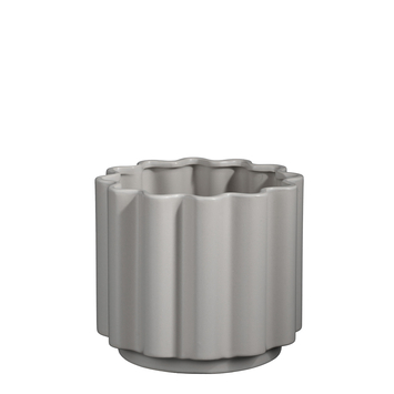 Het maakt niet uit waar deze ronde bloempot komt te staan, hij maakt altijd en overal een goede beurt. Hij heeft een gegolfde buitenkant en ziet er daarom een beetje anders uit dan de standaardpotten. Hij is gemaakt van stevig keramiek en z'n grijze kleur geeft hem een natuurlijke uitstraling. De pot heeft een hoogte van 13,5 cm en een diameter van 16 cm en is geschikt voor binnen. Een leuk idee als geschenk voor een echte plantenliefhebber.