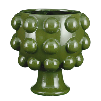 Deze sierlijke bloempot trekt direct de aandacht met zijn opvallende vormgeving. Vervaardigd uit keramiek en gehuld in een warme, groene kleur, straalt deze pot een charmante esthetiek uit. De ronde vormgeving over de gehele pot en de elegante voet waarop deze rust, vallen direct op. Met afmetingen van H28 x ø28 cm biedt de pot voor binnen voldoende ruimte voor jouw groene creaties. Let op: Omdat dit een handgemaakt product is, kan de kleur, maat of vorm bij ieder item iets afwijken. Daarnaast zijn keramieken potten poreus en nooit 100% waterdicht.