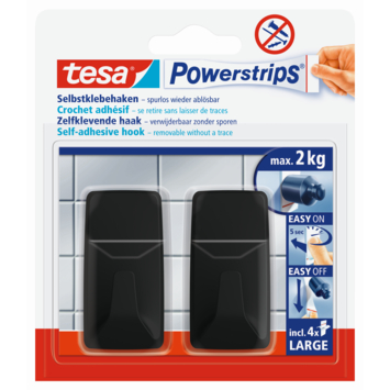 De tesa® Powerstrips zelfklevende haken Large zijn perfect voor het gebruik in de badkamer en keuken. Deze haken hebben een verwijderbare bevestiging, waardoor je veilig items tot een maximumgewicht van 2 kg kunt ophangen. De haken hebben een rechthoekig ontwerp en zijn verkrijgbaar in verschillende kleuren, waaronder wit, chroom, RVS en matzwart. Het is een handige en stijlvolle oplossing om spullen georganiseerd en binnen handbereik te houden.