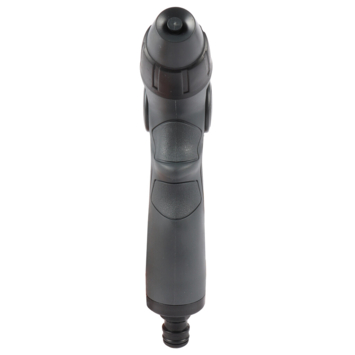 Dit spuitpistool is dus voorzien van een verstelring om de waterkracht te reguleren. Maar ook de watertoevoer is natuurlijk niet onbelangrijk. Om die te bepalen maak je gebruik van de hendel aan de bovenkant van dit spuitpistool. Met die hendel kun je de waterstroom afsluiten. Zo kun jij dit broespistool even opzij leggen, wanneer je andere klusjes uitvoert in de tuin. Ben je klaar met jouw waterklus in de tuin? Laat het water dan even goed uit de slang en het pistool lopen.