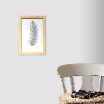 Print in frame - getekende veer 30 x 20 cm is prima geschikt als aankleding van je interieur. De geïllustreerde weergave van de veer past vrijwel in ieder interieur op de muur of op de vensterbank. Het frame is 30 centimeter hoog en 20 centimeter breed.