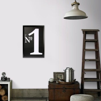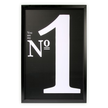 Print in frame - NO. 1 60 x 40 cm is een zwart print met witte letters en past vrijwel in elk stijlvol en modern interieur op de muur. De tekst 'N0 1' staat voor 'nummer 1'. Het frame is 60 centimeter hoog en 40 centimeter breed.