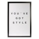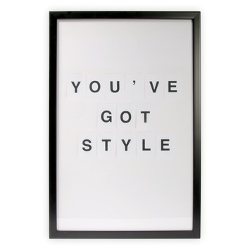 Print in frame - you've got style 60 x 40 cm is een zwart-beige print en past daarom vrijwel in ieder interieur op de muur. De tekst 'You've got style' is afkomstig uit het Engels en betekent 'Je hebt stijl'. Het frame is 60 centimeter hoog en 40 centimeter breed.