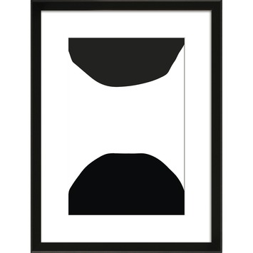 Print in lijst 30x40 Twee halve Cirkels is een zwart/wit print in een luxe lijst. De kleur van de lijst is zwart en de afmetingen 30x40 cm. De lijst heeft een passe-partout waardoor de lijst wat meer diepte krijgt, een echte toevoeging voor aan de wand.