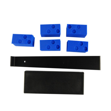 Complete professionele vloerenlegset voorzien van 40 afstandhouders (zodat er een ruimte gemaakt kan worden tussen de vloer en de muur), een massief kunststof stootblok en een zwaar ijzeren, zwart gelakt, trekijzer voor het aantikken van de vloer. Deze set is ideaal voor click pvc, parket of laminaat. Lees voor het leggen van het click pvc, laminaat of parket eerst goed de gebruiksaanwijzing om te bepalen of en hoe een stootblok of trekijzer mag worden toegepast. De spietjes zijn driehoekig van vorm en hebben een geribbelde oppervlakte op de schuine zijde, waardoor vrijwel traploos de gewenste afstand van de muur kan worden aangehouden. Het aanslagijzer gebruik je bij de laatste plank van de rij. Vaak staat een andere muur 'in de weg' om het stootblok + hamer te gebruiken. Met het aanslagijzer kun je toch de laatste plank goed laten aansluiten bij de rij. Heb je nog meer afstandhouders/spietjes nodig dan zijn deze eventueel ook als losse set bij te bestellen.