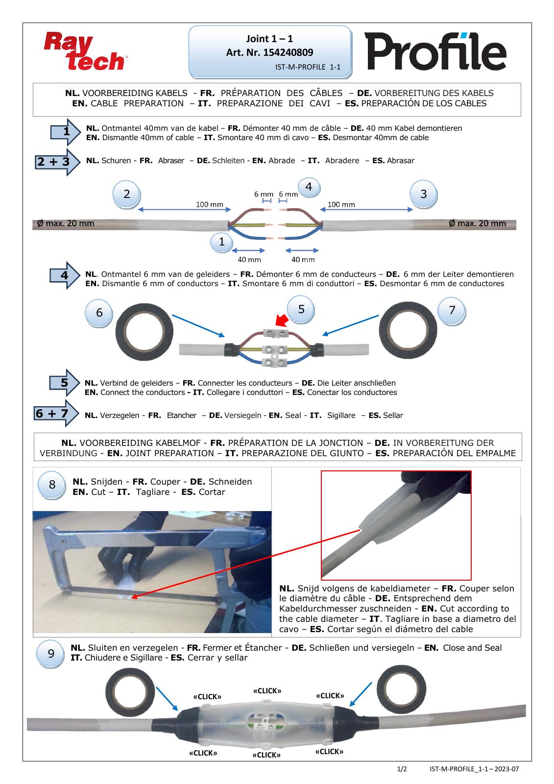 Met deze Profile kabelgrondmof 1-op-1 kun je 2 grondkabels met elkaar verbinden. Deze drukwaterdichte grondmof (beschermingsklasse IP68) zorgt voor een veilige waterdichte ondergrondse elektrische aansluiting tussen 2 grondkabels.