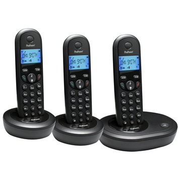 Deze Profoon DECT telefoon PDX-7330 tripleset zwart zijn 3 handzame telefoons en bieden vele voorzieningen en mogelijkheden, zoals naam- en nummerweergave, telefoonboek voor 50 contacten, nummerherhaling voor de 10 laatst gekozen nummers, instelbare hoorn-, bel- en luidsprekervolume, een laag batterijverbruik (100 uur stand-by en 10 uur praten). De Profoon DECT telefoon PDX-7330 basisstation is GAP-compatibel, uitbreidbaar met maximaal 5 handsets.