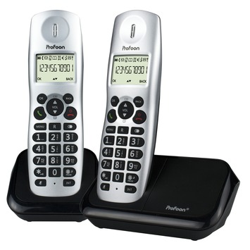 Deze Profoon DECT telefoon PDX-8320 twinset grijs zijn handzame telefoons en bieden vele voorzieningen en mogelijkheden, zoals naam- en nummerweergave, telefoonboek voor 50 contacten, nummerherhaling voor de 10 laatst gekozen nummers, instelbare hoorn-, bel- en luidsprekervolume, een laag batterijverbruik (100 uur stand-by en 10 uur praten). De Profoon DECT telefoon PDX-8320 basisstation is GAP-compatibel, uitbreidbaar met maximaal 4 handsets.
