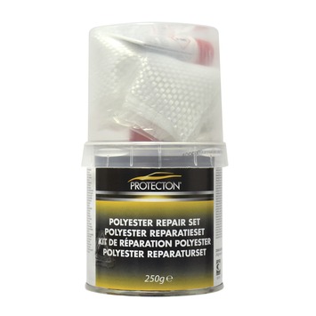 Polyesterhars van Protecton voor auto, boot, caravan of surfplank. Het ideale product voor alle reparaties op metaal, polyester, hout. Eenvoudig in gebruik. Inclusief verharder, een glasvezelmat, een kwast en een spatel.