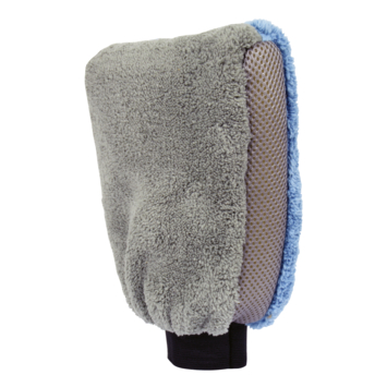 De microvezels in de Bi-Color washandschoen nemen meer water en shampoo op.