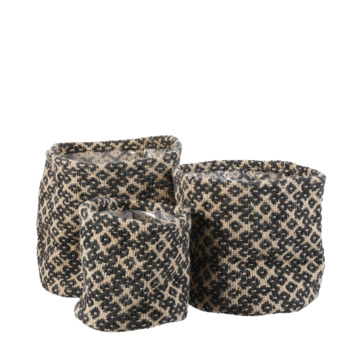 De Puglia mand zwart 25 x 25 cm is een veelzijdige mand met een natuurlijke uitstraling. De mand is gemaakt van textiel, de binnenkant is gevoerd met folie. Gebruik de mand om planten in te zetten, of om een bloemstuk in te maken. Je kan de mand ook gebruiken als decoratiemateriaal en vullen met accessoires. Deze mand heeft een doorsnede van 25 cm en is 25 cm hoog.