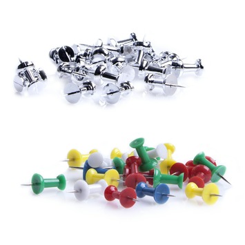 Een memobord is aangeschaft, maar de punaises nog niet? Met deze kleurrijke punaises maak jij het ophangen van notities leuker! Je krijgt nu 25 gekleurde punaises in een doosje. Deze zijn gemaakt van staal en kunststof.