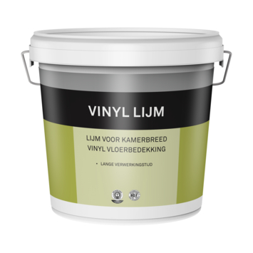 PVC-lijm vinyl kamerbreed lijm is een krachtig oplosmiddelvrije en emmissie-arme dispersielijm. De lijm kan toegepast worden voor natte/half natte, droge en contactverlijming PVC stroken, vinyl kamerbreed en tegels dienen nat/halfnat verlijmd te worden maximale strook lengte 170cm en tegels tot 95 x 95cm. Toepassing is alleen voor binnen.