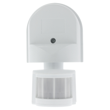 Bewegingsmelder opbouw wandmontage. PIR bewegingsmelder met instelbare schemerschakelaar. Brandduur instelbaar van ±10 seconden tot ± 7 minuten. Reikwijdte melder ± 1-8 meter met een straal van 180 graden. Tot maximaal 1200 Watt voor gloeilampen, max. 300 Watt voor TL-lamp. Spatwaterdicht (IP44).