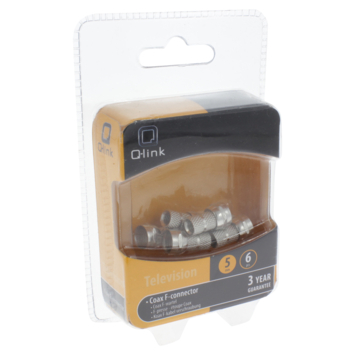 Met de Q-link F-connector verbind je eenvoudig coaxkabels met schotels, versterkers of splitters. Deze connector zorgt ervoor dat je kabel direct wordt aangesloten, wat resulteert in een aanzienlijke vermindering van signaalverlies bij radio of televisie. In de verpakking vind je 6 F-connectors die beschermen tegen storingssignalen, wat bijdraagt aan een verbeterde ontvangst. Deze specifieke F-connector is ontworpen voor coaxkabels met een diameter van 5 mm.