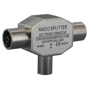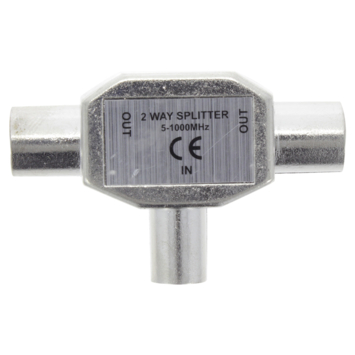 - Verdeelt een coax signaal naar twee aansluitingen