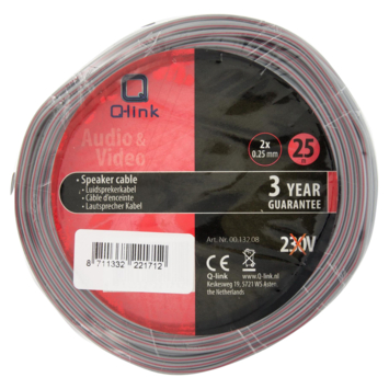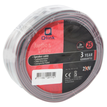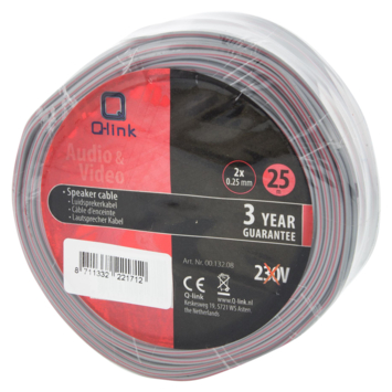 Het Q-link luidspreker snoer is uitermate geschikt voor het verbinden van je home cinema-systeem. Met een lengte van 25 meter is het snoer perfect voor luidsprekers met een vermogen tot 25 watt en een afstand van de kabel van maximaal 4 meter. Dankzij de 0,25 mm² dikke geleiders wordt een optimale signaaloverdracht gegarandeerd, waardoor er geen verlies in geluidskwaliteit optreedt.