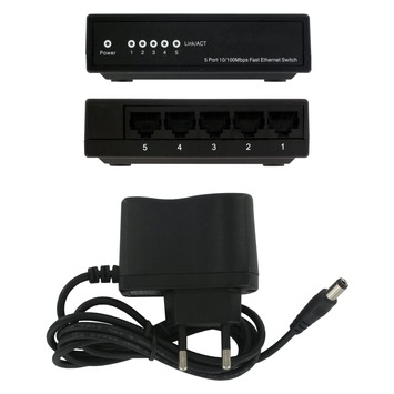 Q-Link UTP netwerkswitch, een netwerkaansluiting voor computer, printer en camera's. De netwerkswitch heeft 5 poorten. Overdrachtsnelheid 10/100 Mbps. De netwerkswitch wordt geleverd inclusief voeding.