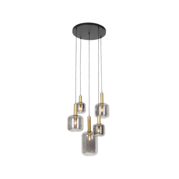 De QAZQA 5-lichts hanglamp Zuzanna 40W E27 zwart staal is een stijlvolle lamp die direct een luxe en warme sfeer creëert in jouw woonkamer, eetkamer of hal. Het zwarte stalen frame, de gouden accenten en smoke glas zorgen voor een elegante uitstraling. Dankzij de vijf lichtpunten verspreidt de lamp het licht mooi en ontstaat er een speels effect dat zowel functioneel als sfeervol is.