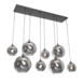 De QAZQA 8-lichts hanglamp Sandra 40W E27 zwart staal is een stijlvolle lamp die direct sfeer en karakter toevoegt aan je woonkamer, eetkamer of kantoor. Het art deco design met glazen bollen in smoke-effect zorgt voor een speels lichteffect dat een warme en dynamische uitstraling geeft.