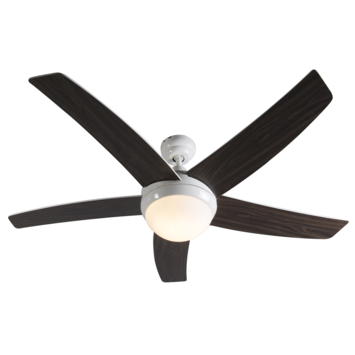 De ventilatorbladen zijn dubbelzijdig afgewerkt in wit en zwart, zodat je eenvoudig de gewenste uitstraling kiest. Met een totale breedte van 130 cm en bladen van 53 cm lang verplaatst de Cool 52 voldoende lucht voor optimaal comfort. De ventilator heeft drie snelheidsstanden met geluidsniveaus van 33, 38 en 44,7 dB, waardoor hij opvallend stil is. De montageplaat heeft een diameter van 13 cm en de ventilator wordt geleverd met een afstandsbediening, exclusief batterijen.