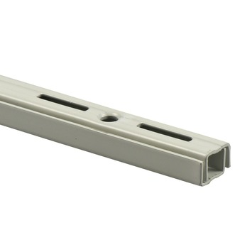 Deze set bestaat uit twee Railsen Enkel. De rails heeft een lengte van 150cm. In combinatie met de Enkele Dragers kan zo een functionele wand van 150cm hoog gecreeërd worden. Doordat er meerdere slotgaten in de rails zitten ben je heel flexibel en kan je verschillende hoogtes tussen de planken creeëren. Kleur wit.
