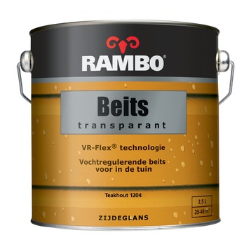 De Rambo beits teakhout transparant 2,5 l is geschikt voor het gronden, voorlakken en aflakken van vrijstaand houtwerk in de tuin. Hierbij kun je denken aan schuren, schuttingen, hekken, hokken, pergola’s en speeltoestellen. De beits heeft een goede vloeiing en is gemakkelijk te verwerken. Daarnaast is de beits weersbestendig en vochtregulerend, hierdoor is de beits uitstekend geschikt voor buitengebruik. Het blik bevat 2,5 liter teakhout transparante beits, dit is genoeg voor een oppervlakte van zo'n 35 tot 40 vierkante meter.